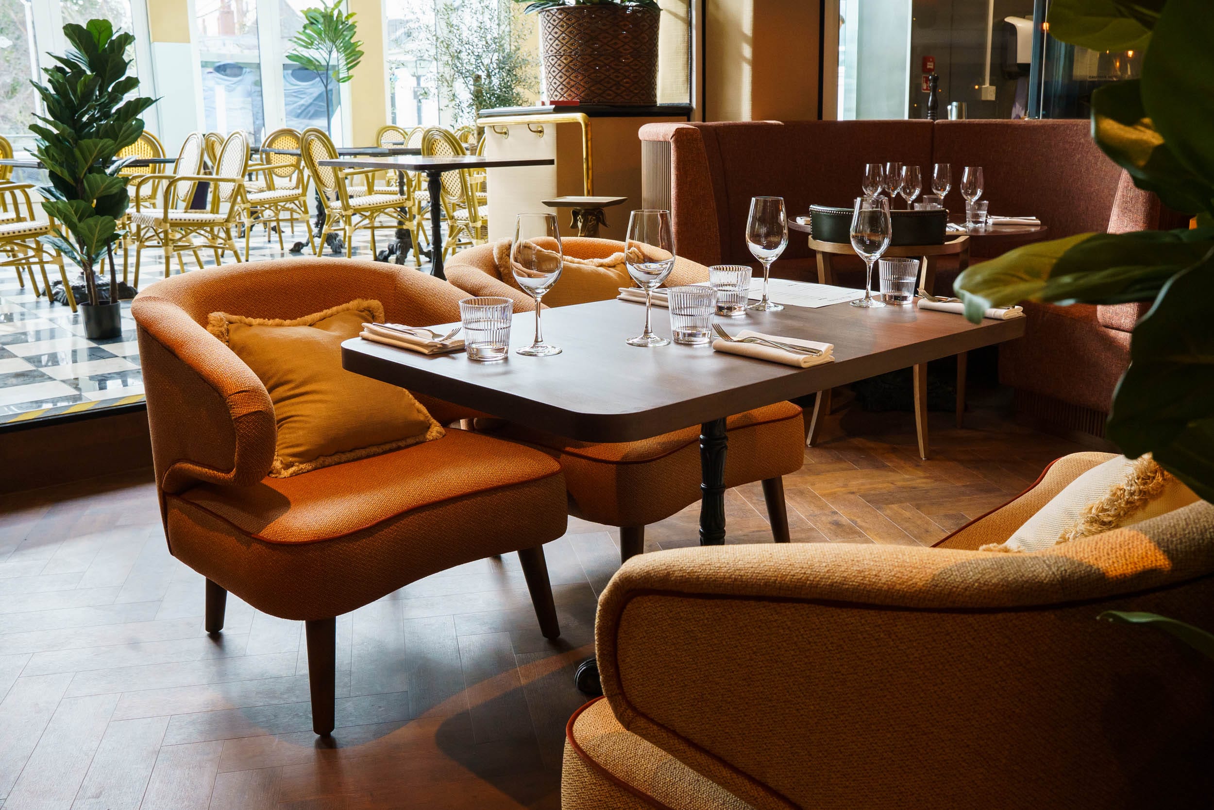 Coffee, meetings, cocktails, dinner. The Lobby in the morning, the terrace when the weather holds, drinks after dark.